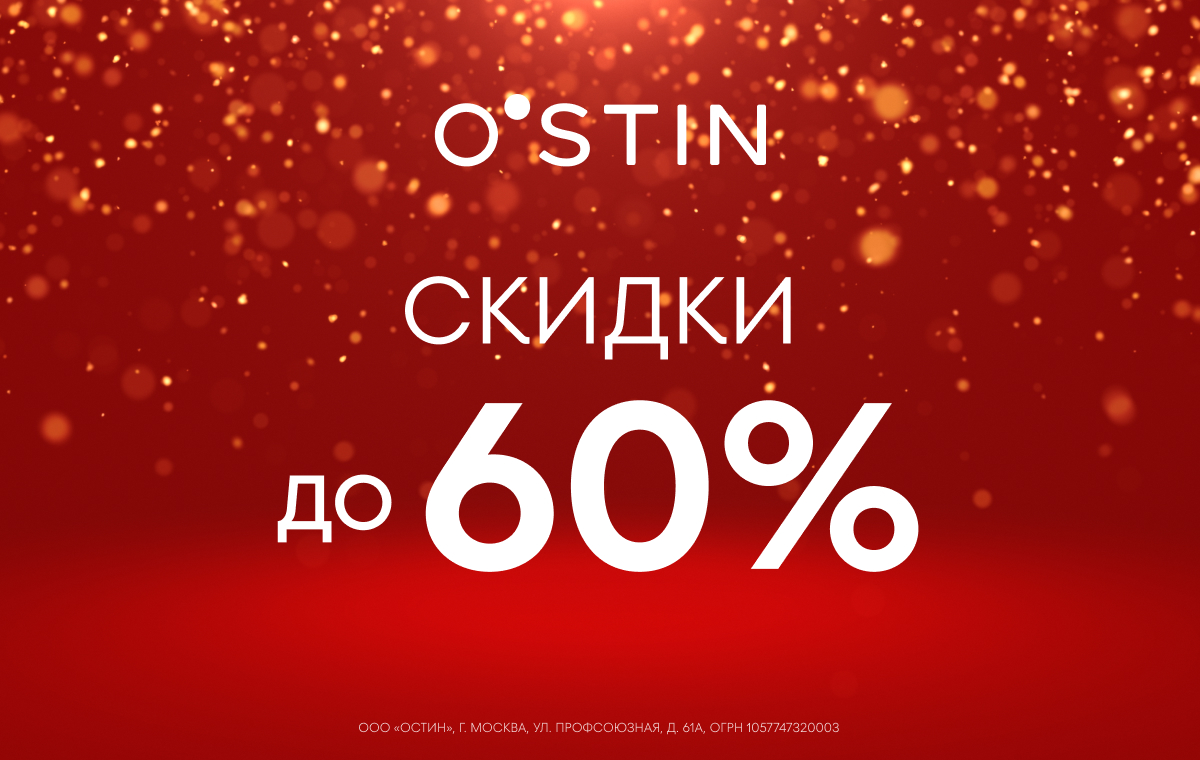Только в декабре и январе – скидки до 60% на одежду, обувь и аксессуары для любого настроения и стиля. Тёплые куртки, уютный трикотаж и праздничные образы – идеальный момент обновить гардероб и выбрать подарки близким. Ждём вас в магазинах O’STIN! Подробности уточняйте у сотрудников.